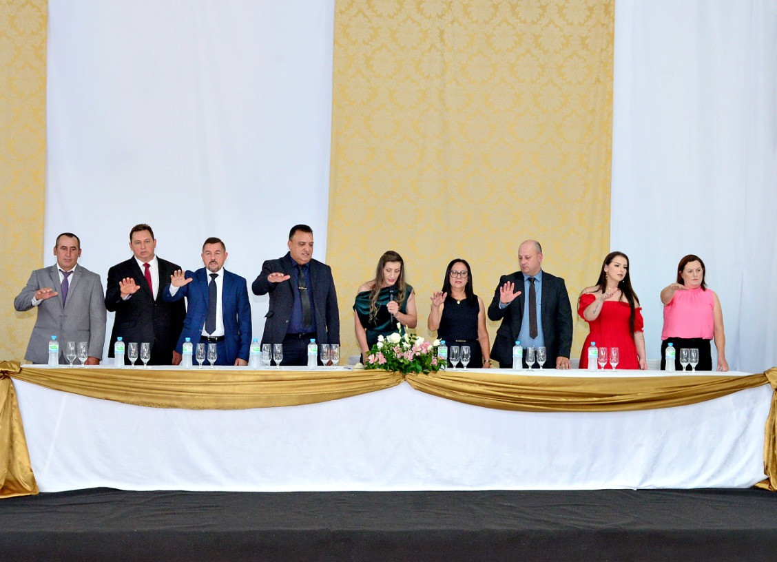 Após, houve a troca de mesa, com a recepção aos novos vereadores. Conforme dispõe o Art. 96, do Regimento Interno, a Câmara Municipal se instala sob a Presidência do Vereador mais votado entre os presentes, que designa um de seus pares para secretariar os trabalhos. Com isso, quem conduziu a posse foi a vereadora mais votada, Lenir Nunes. Todos os vereadores eleitos e legalmente diplomados fizeram o juramento e foram empossados em seus cargos.