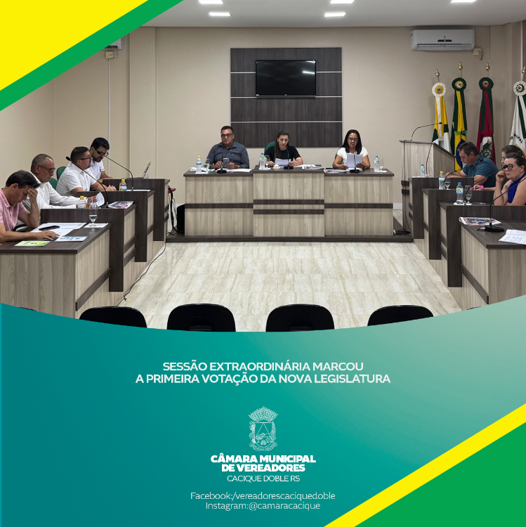 A Sessão Extraordinária da Câmara de Vereadores de Cacique Doble foi realizada nesta segunda-feira, dia 27 de janeiro de 2025, na Sala de Sessões Armando Biavatti e presidida pela Veradora Lenir Nunes.