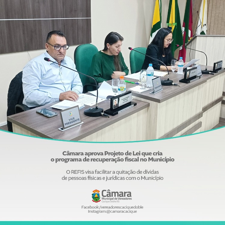O Projeto de Lei Nº 041/2025, de 09 de junho de 2025, que institui o Programa de Recuperação Fiscal do Município – REFIS, foi analisado e aprovado por todos os vereadores na Sessão Ordinária desta terça-feira, 17 de junho. O Programa tem o objetivo de oferecer condições facilitadas para que contribuintes regularizem suas pendências financeiras junto ao Município.