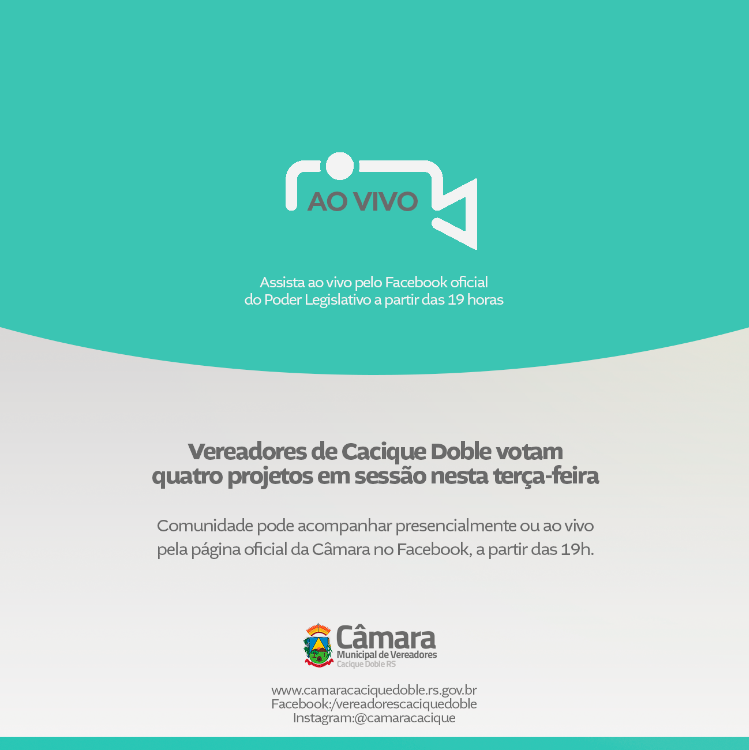 A Câmara Municipal de Vereadores de Cacique Doble realiza nesta terça-feira (19/08), às 19h, mais uma sessão ordinária, com a votação de quatro Projetos de Lei de interesse da comunidade.
